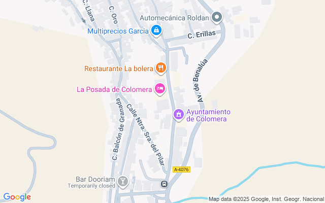 Plaza de garaje en planta semisótano de un edificio compuesto por tres plantas sobre rasante en el municipio de Colomera, en la provincia de Granada. Edificio construido en el año 2009 con ascensor y uso residencial. Situado en un entorno residencial situado en una zona céntrica donde la tipología dominante son las viviendas unifamiliares adosadas de dos y tres plantas sobre rasante. Tiene acceso rodado a través de rampa y peatonal a través de escaleras y ascensor del edificio. Ubicado próximo al Ayuntamiento de la localidad y diversos comercios y servicios como cafetería, restaurante, estanco, etc. La localidad dispone de buenos accesos por carretera, a través de la A-4076.