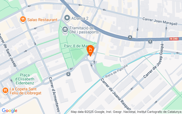Ubicada en Sant Feliu de Llobregat, a escasos metros de la Carretera Nacional N-340 y del Carrer del Pla, una de las vías principales de la zona que enlaza con la carretera B-23.