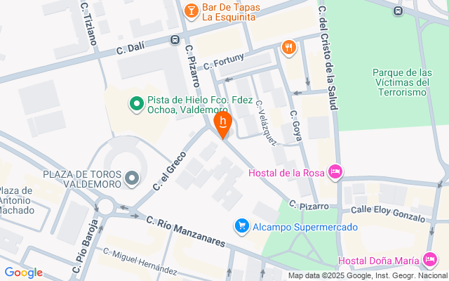 Plaza de aparcamiento ubicada en las instalaciones dedicadas a ello, en las confluencias de las calles Velázquez, Greco y Pizarro.