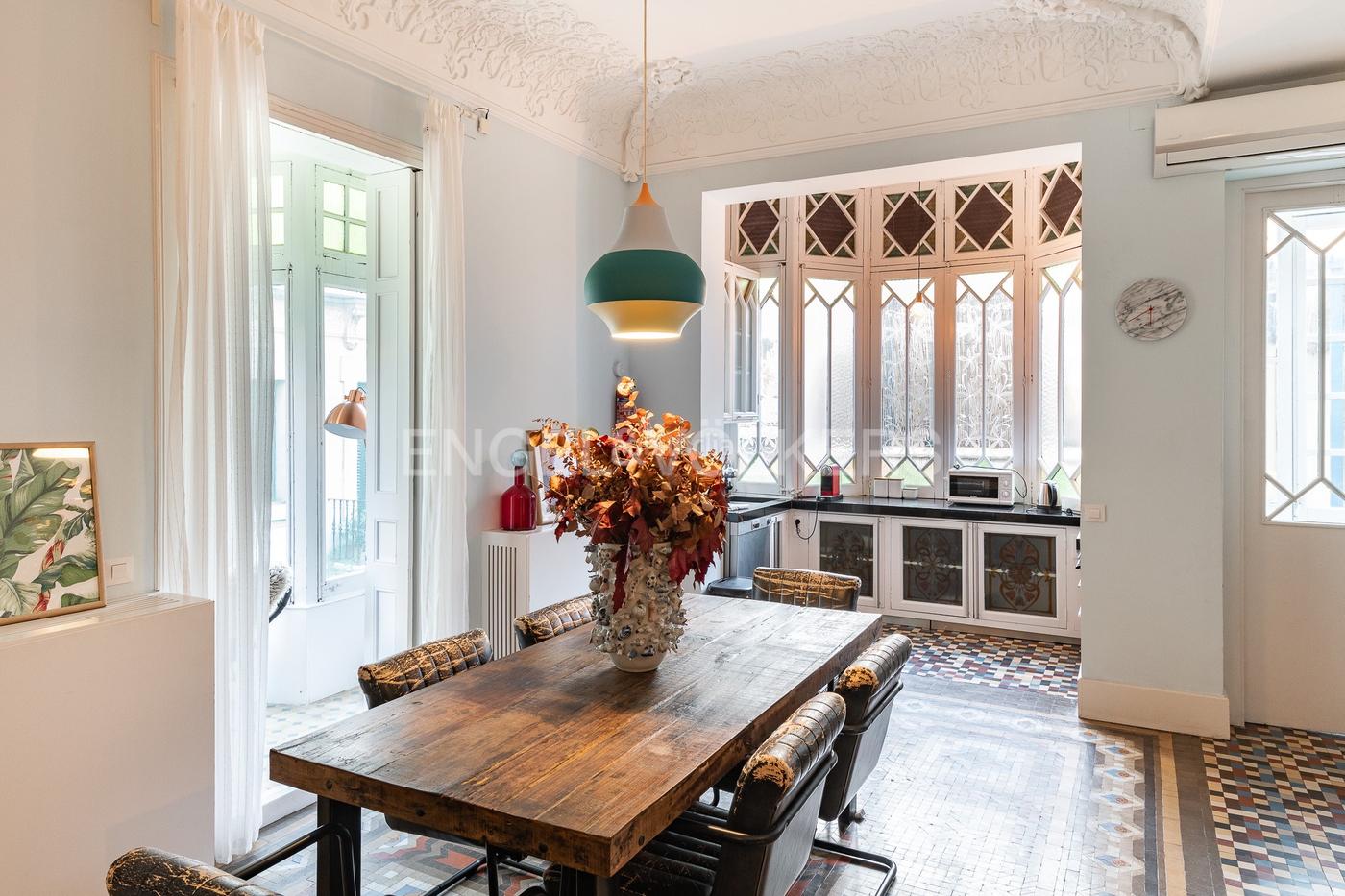 Aquest pis es troba en una finca règia que destaca per la seva elegància clàssica i els detalls arquitectònics únics, típics d´aquest tipus de construccions. Amb una superfície de 130 m², aquesta propietat combina l´encant històric amb comoditats modernes, mantenint elements originals que aporten caràcter i autenticitat. El pis disposa de tres dormitoris exteriors, cadascun amb finestres grans que permeten una entrada abundant de llum natural i ofereixen vistes al carrer, creant una sensació d´amplitud i connexió amb l´entorn. Els sostres alts són un tret distintiu de la finca, decorats amb motllures originals que destaquen l?estil senyorial de l?espai. L´apartament compta amb tres banys totalment renovats, pensats per oferir confort i practicitat, mantenint l´equilibri entre allò clàssic i allò contemporani en els seus acabats. Una de les joies d´aquesta propietat és la terrassa de 60 m², accessible des de l´interior del pis. Aquest espai exterior és perfecte per gaudir de moments de tranquil·litat o per organitzar trobades socials, amb prou amplitud per personalitzar segons les teves preferències. La propietat se situa en una de les millors zones de la Vila de Gràcia, molt a prop de Sant Gervasi-Galvany, l´Avinguda Diagonal i Passeig de Gràcia, el bonic carrer Sèneca i Plaça Gala Placídia. La zona té tot tipus de serveis des de restaurants amb ofertes gastronòmiques de tots els racons del món, supermercats, entitats bancàries, botigues de roba de dissenyadors nomenats, galeries d´art i institucions educatives i esportives a pocs minuts. Amb immediata connexió amb les artèries vials de la ciutat, Metro, Bus i Ferrocarrils.