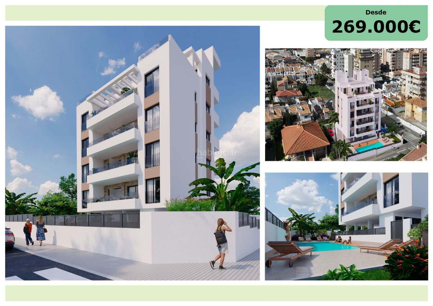 Vive la luz del Mediterráneo en tu nuevo hogar Descubre una exclusiva promoción de apartamentos de obra nueva en Nueva Torrevieja, una de las zonas más demandadas de Torrevieja por su equilibrio perfecto entre tranquilidad, servicios y cercanía al mar. Este moderno edificio ha sido diseñado para ofrecer máximo confort, eficiencia energética y calidad de vida, con viviendas orientadas al este que aprovechan al máximo la luz natural desde primera hora del día. Diseño moderno con máxima privacidad Cada planta cuenta con solo 2 viviendas, garantizando mayor privacidad y tranquilidad. En la última planta, encontrarás una exclusiva vivienda tipo ático, única en el edificio. Las viviendas ofrecen: 2 dormitorios y 2 baños Amplias terrazas luminosas Superficie total desde 86,78 m² Plaza de parking privada exterior incluida Disponibilidad y precios La promoción ofrece diferentes viviendas de 2 dormitorios y 2 baños, todas con una superficie total aproximada de 86,78 m², además de plaza de parking privada incluida. Actualmente, las viviendas disponibles comienzan con los apartamentos 1ºA y 1ºB por 269.000 €. En la segunda planta, los apartamentos 2ºA y 2ºB están disponibles por 279.000 €. En la tercera planta, los apartamentos 3ºA y 3ºB tienen un precio de 289.000 €. En la cuarta planta, los apartamentos 4ºC y 4ºD están disponibles por 299.000 €. La promoción se completa con un exclusivo ático de 2 dormitorios y 2 baños, con una amplia superficie total de 138,38 m², disponible por 349.000 €, que incluye un porche cubierto al 100%. Todas las viviendas incluyen plaza de aparcamiento exterior privada y tienen una fecha estimada de entrega de 18 meses desde la firma del contrato. Zonas comunes pensadas para disfrutar El residencial dispone de una agradable piscina comunitaria, perfecta para relajarte durante todo el año en el clima privilegiado de la Costa Blanca. Además, incorpora soluciones sostenibles como: 4 paneles fotovoltaicos para zonas comunes Certificación energética clase A Calidades premium incluidas Cada vivienda está equipada con materiales y acabados de alta calidad: Iluminación interior y exterior Persianas automatizadas Baños completos con mamparas de ducha Suelo radiante en baños Sistema de aerotermia para mayor eficiencia energética Ubicación estratégica en Torrevieja Situado en Nueva Torrevieja, tendrás todo a tu alcance: A solo 4 minutos a pie del Centro de Salud La Loma A 10 minutos caminando del centro de Torrevieja y el paseo marítimo Rodeado de bares, restaurantes y servicios Una ubicación ideal tanto para vivir todo el año como para inversión. Invierte en calidad de vida Esta promoción es perfecta si buscas una vivienda moderna, eficiente y bien ubicada en la Costa Blanca. Contáctanos hoy mismo para más información o para reservar tu vivienda.