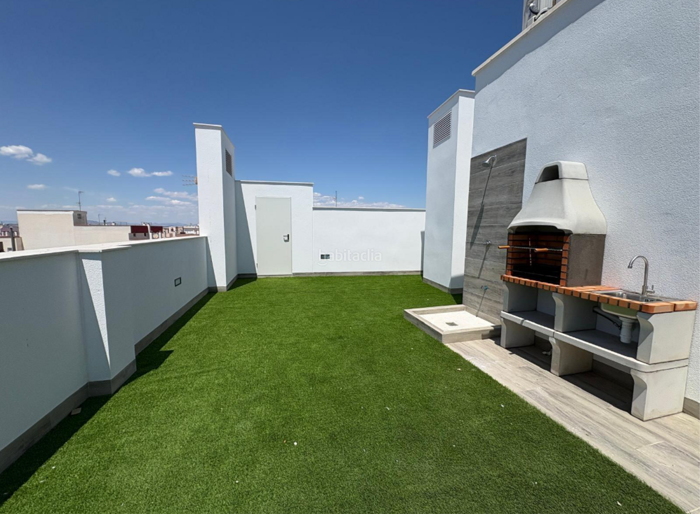 Solárium comunitario con zona de barbacoa y vistas panorámicas al mar