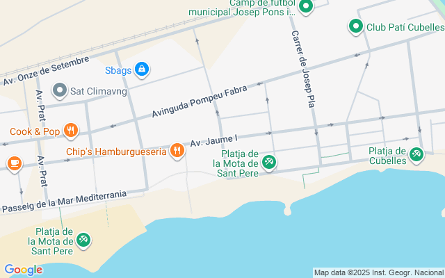 El edificio se encuentra frente a la playa de Mota de Sant Pere, pero también está la playa Llarga, la playa de Cubelles, la playa de Ibersol y la playa de Las Salinas, con una playa apta para perros.