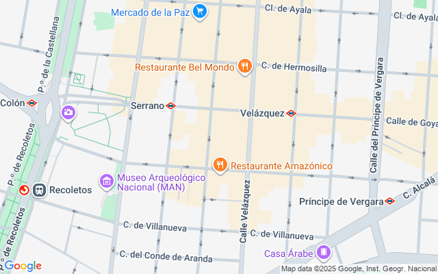 Recoletos es la zona Prime del Barrio de Salamanca, la zona más cercana a El Retiro y concretamente esta vivienda se encuentra a pasos del parque más grande y representativo de Madrid. El Barrio de Salamanca es una de las zonas más relevantes de Madrid tanto por su peculiar distribución como por los vecinos que tradicionalmente han habitado sus emblemáticas calles. Su construcción data de la segunda mitad del siglo XIX y corresponde a la ampliación urbanística llevada a cabo durante el reinado de Isabel II. El precursor al que debe su nombre fue el malagueño José de Salamanca y Mayol, Marqués de Salamanca, quien concibió un nuevo emplazamiento con una cuidada edificación que albergara a las clases aristocráticas y burguesas de Madrid. De estilo decimonónico, se caracteriza por su especial distribución regular en forma de damero con calles perpendiculares. Sus edificios gozan de especial interés gracias a su calidad arquitectónica y la belleza de sus fachadas. Tradicionalmente, Salamanca fue una zona de uso residencial, especialmente habitada por las élites políticas y económicas del país. En los últimos cincuenta años este carácter residencial convive con otras actividades como la empresarial, la diplomática y especialmente la comercial ya que es una de las áreas de moda de lujo más importantes de la capital. El Parque del Buen Retiro es el auténtico protagonista de este barrio de Madrid que tiene sus flancos en las Calles de Alcalá y O'Donnell en el extremo norte, la Calle Doctor Esquerdo en el este, la Avenida del Mediterráneo y el Paseo de Reina Cristina en el Sur y la Calle Alfonso XII en el extremo occidental.