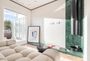 - Amplio salón con chimenea decorativa de bioetanol, en hierro lacado en negro, encimeras de piedra natural verde guaco y