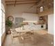 La vivienda, para reformar, se abre con una zona de día muy clara y acogedora: salón-comedor y cocina en línea de , integrada para ganar amplitud visual y orden. La iluminación es suave y continua, realzada por las vigas de madera vistas y detalles naturales y tradicionales. En esta planta se ubica también el espacio para un baño y un práctico espacio de trabajo, pensado para realizar cualquier tarea con comodidad.