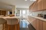 El espacio principal ofrece un amplio salón-comedor con cocina abierta de diseño, totalmente equipada con electrodomésticos (horno, microondas, lavavajillas y frigorífico). La cocina, de la reconocida marca Porcelanosa, incorpora una elegante isla central con zona para comer, ideal para compartir momentos en familia o con amigos. La campana extractora, integrada en la encimera y de diseño minimalista (marca Bora), absorbe humos y olores directamente desde su origen, aportando funcionalidad y estética. Además, el salón dispone de espacio para zona de comedor y área de descanso con sofá, desde donde contemplar el mar. En esta zona también encontramos un práctico aseo de cortesía.