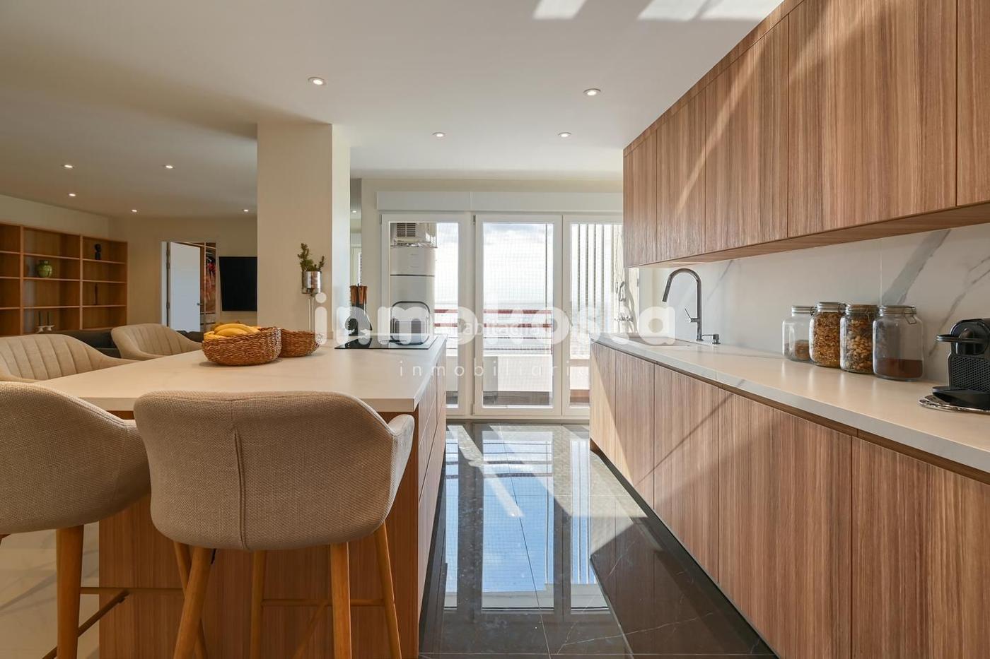 La propiedad ha sido renovada íntegramente con materiales de alta gama y destaca por ser completamente exterior, lo que permite disfrutar de una luz natural excepcional en todas sus estancias, así como de vistas abiertas al Mediterráneo.