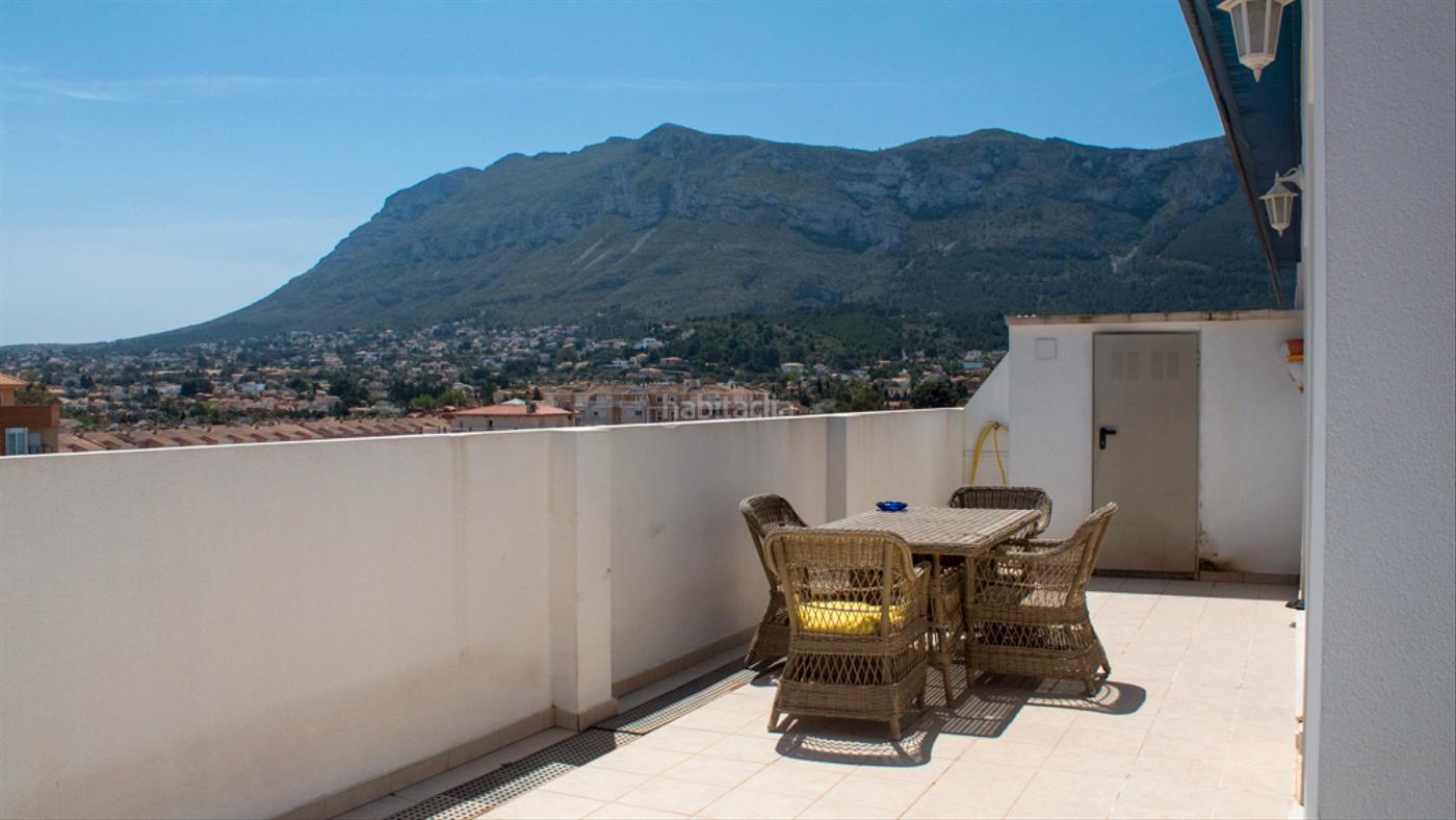 Precioso ático dúplex muy soleado con una terraza de 50 m2 con vistas al Montgó y a Denia. En la planta principal encontramos en amplio y luminoso salón con salida a la gran terraza que le permitirá hacer vida al aire libre, cocina independiente, 1habitación y 1 baño. En planta alta hay 2 dormitorios y otro baño. Todo ello en sus 100 m2 construidos. Cuenta con climatización por conductos, doble cristal y se vende semi amueblado. Dispone además de piscina comunitaria, ascensor y plaza de garaje fantástico!