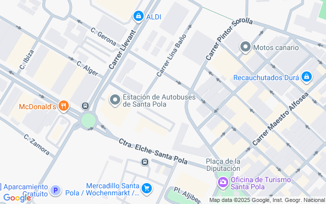Santa Pola es un acogedor pueblo pesquero español con unos 40.000 residentes durante todo el año y viven todo el año. Todo lo que necesitas está aquí, así como cientos de restaurantes. Paseo marítimo de 10 km de longitud y playas ilimitadas a lo largo de toda la ciudad. El puerto deportivo popular con todos los restaurantes, el puerto deportivo de taxis donde los barcos te llevan a la isla mediterránea de Tabarca en unos 15 minutos. El puerto pesquero donde los pescadores venden su pesca, que consiste en todo lo que puedes encontrar en el Mediterráneo como mariscos, pescados de todo tipo, calamares, etc.