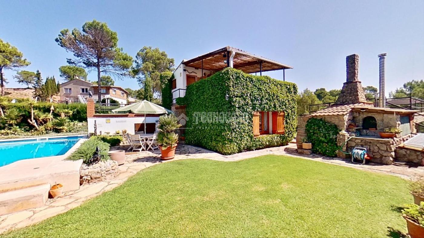 Ubicada en un entorno natural incomparable, rodeada de vegetación y con salida directa al bosque, esta increíble propiedad de 632 m² alberga dos viviendas independientes diseñadas con gran cuidado, materiales nobles y detalles rústicos de alta calidad. Una combinación perfecta entre confort, diseño, sostenibilidad y naturaleza. Casa principal: 107 m² de elegancia rústica - Construida con piedra extraída de la misma montaña, la casa principal se funde de manera orgánica con el paisaje, transmitiendo robustez, calidez y autenticidad. Cuenta con 107 m² distribuidos en tres habitaciones dobles, luminosas y acogedoras, Dos baños: uno completo con bañera redonda y doble pica, y un aseo adicional con bidet y salida directa a una terraza con vistas. Acabados de alta calidad, ya que las puertas son macizas de pino de Soria, y todos los detalles amaderados , en roble y madera de haya, que aportan carácter y durabilidad. En la parte delantera de la casa encontramos una amplia terraza con toldo extensible, perfecta para disfrutar del exterior en cualquier época del año. La casa incluye una bodega privada, con un encanto especial con zona de relax, un gimnasio equipado con salida a otra terraza chill out con vistas panoramicas , garaje cerrado para un coche con acceso directo des de la calle y varios trasteros distribuidos en la propiedad, pensados para múltiples usos de almacenamiento. Cabe recalcar el confort y la autosuficiencia energética, ya que disponen de calefacción de gasoil, aire acondicionado, leñero abastecido para tres inviernos, terraza preparada para la instalación de placas solares y tres depósitos de agua, uno de 8.000 litros de lluvia, otro de 18.000 litros con un sistema para potalibilizar el agua, y otro de 4.000 litros para el riego.