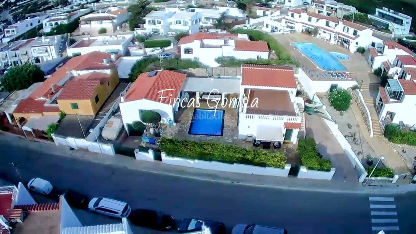 Es un chalet compuesto de dos viviendas independientes unificadas por zona de piscina y barbacoa. Además tiene una zona superior preparada para convertir en una tercera vivienda de características similares (salón con cocina americana, dos habitaciones y un baño. Esta zona está preparada para cerrar y convertir en otro apartamento con una fantástica terraza con vistas al mar). Cada una de las viviendas consta de salón comedor con cocina americana, dos habitaciones y un baño. ambas viviendas están completamente equipadas, poseen aire acondicionado con bomba de frío calor, chimenea, luces led, ventiladores y todos los detalles que la harán convencerte por completo. Cada una de ellas posee un estilo diferente pero con paredes de marés y un estilo típicamente menorquin, cada una con su zona de lavandería independiente.