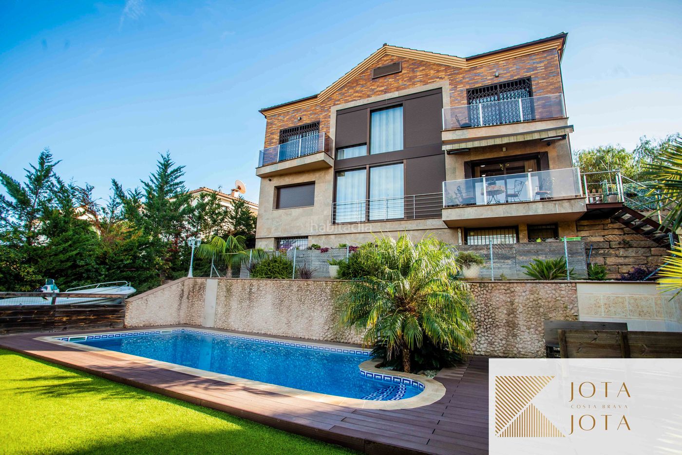 Espectacular casa de 3 plantes a Lloret de Mar. A la planta baixa hi ha un saló-menjador amb llar de foc, cuina independent, safareig, despatx amb llar de foc i 1 bany. A la primera planta hi ha 1 dormitori amb bany i terrassa, 2 dormitoris dobles, un dormitori amb bany i vestidor i un bany complet. A la segona planta hi ha golfes de 70 m2. Al soterrani hi ha gimnàs amb bany i dutxa, espai preparat per instal·lar 1 jacuzzi, un celler, garatge per a 3 cotxes amb porta elèctrica i taller. Persianes automàtiques, calefacció de gas natural, aire condicionat amb bomba de calor i fred, alarma, piscina amb aigua salina, zona de barbacoa i forn. Disposa de casa per a convidats distribuïda en saló menjador amb xemeneia, cuina americana un dormitori doble i bany equipat amb plat de dutxa i mampara. Disposa de 2 parcel·les de 900 m2 cadascuna. ia 101 km de la frontera amb França.