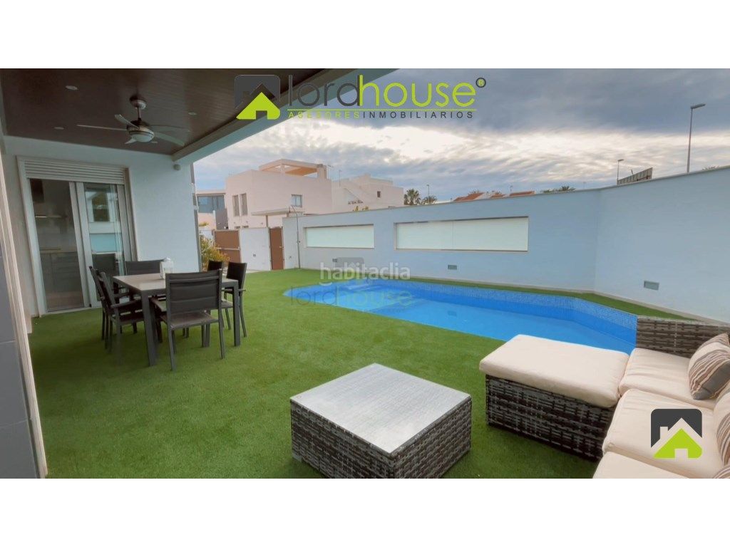 1183. Lordhouse. Directo de promotor. VILLA INDEPENDIENTE DE DOS PLANTAS CON SOLÁRIUM Y PISCINA PRIVADA. Villa independiente totalmente equipada y amueblada en parcela de 296 m². Esta bonita vivienda cuenta con 3 Dormitorios, 3 Baños y cocina independiente, con agradables vistas al mar y piscina privada. Zona de aparcamiento dentro de la parcela. Además, cuenta con la posibilidad de construir un cuarto dormitorio en la primera planta.