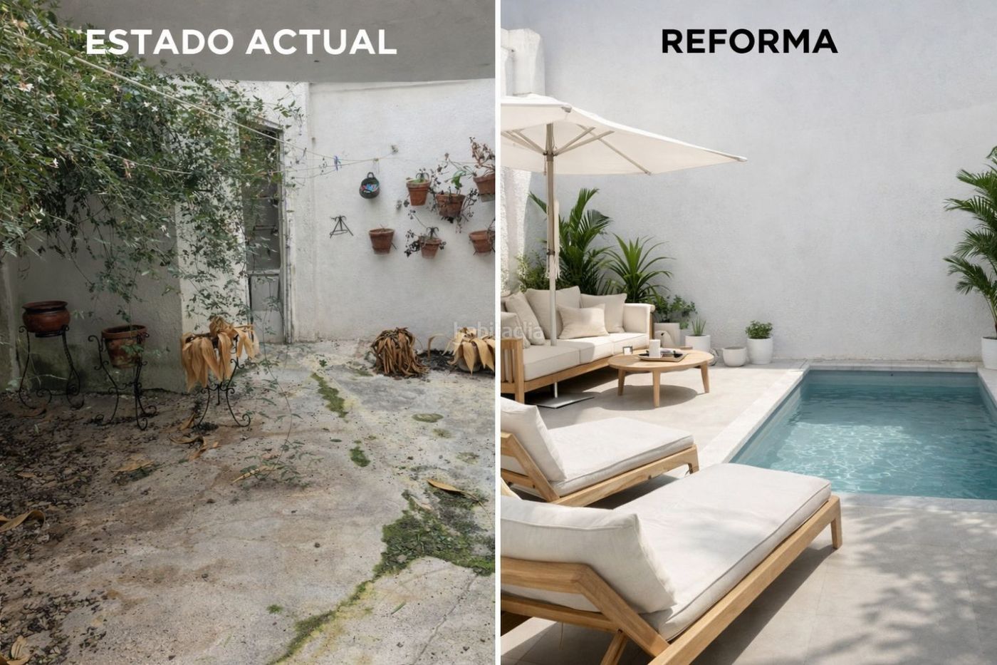 Dispone de un acogedor salón principal, una salita ideal como zona de estar o despacho, baño completo, y el cuerpo de casa con acceso directo a un gran patio, perfecto para disfrutar al aire libre. El patio ofrece amplitud suficiente y posibilidad de instalar piscina, convirtiéndose en un espacio ideal para reuniones familiares y ocio.