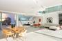 Se accede a la primera planta mediante ascensor por unas cómodas escaleras por el lateral izquierdo de la vivienda, donde se encuentra un amplio y luminoso salón-comedor a doble altura cuya pared posterior deja ver la piscina como si fuera un cuadro. Su exquisito diseño no deja indiferente a nadie.