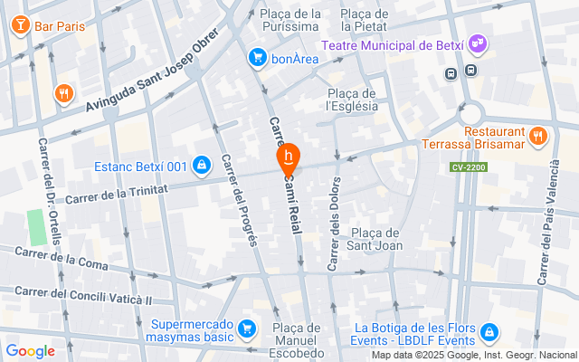 Vivienda unifamiliar de dos plantas, compuesta por dos dormitorios y un baño situada en el municipio de Betxí, provincia de Castellón. La entrada de la vivienda es por la puerta del garaje. La planta baja se distribuye en salón-estar, cocina y un patio que está tapiado donde se encuentra el baño y en la primera planta se encuentran los dos dormitorios. La vivienda, construida en 1950, necesita ser remodelada en su totalidad ya que no se encuentra en buen estado de conservación. Cuenta con fácil acceso por la carretera CV-222 por Carrer de Joaquín Ferrandis y circunvalación y se encuentra rodeada por servicios tales como supermercados, farmacia, bares y restaurantes, bancos, oficina de correos y varios colegios e institutos. Además, se encuentra próxima al Ayuntamiento de Betxí, al Centro de Salud de Betxí, al Complejo Deportivo Robert Fernández Bonillo y al Pabellón Polideportivo Municipal de Betxí. La vivienda tiene una superficie aproximada de 72 m², está compuesta de dos plantas, está distribuida en varias dependencias y servicios.