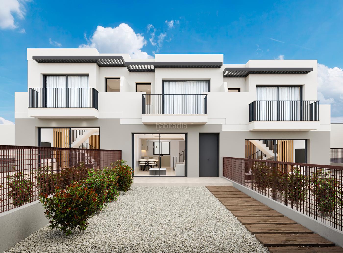 Conjunto elegante y eficiente, cada una de las tres casas consta de 3 dormitorios con armarios empotrados, 3 baños. En planta baja salón -comedor con cocina abierta, baño, y acceso directo a la terraza y jardín privado. Dispone de garaje cerrado de 48 m2 con acceso directo a la vivienda.