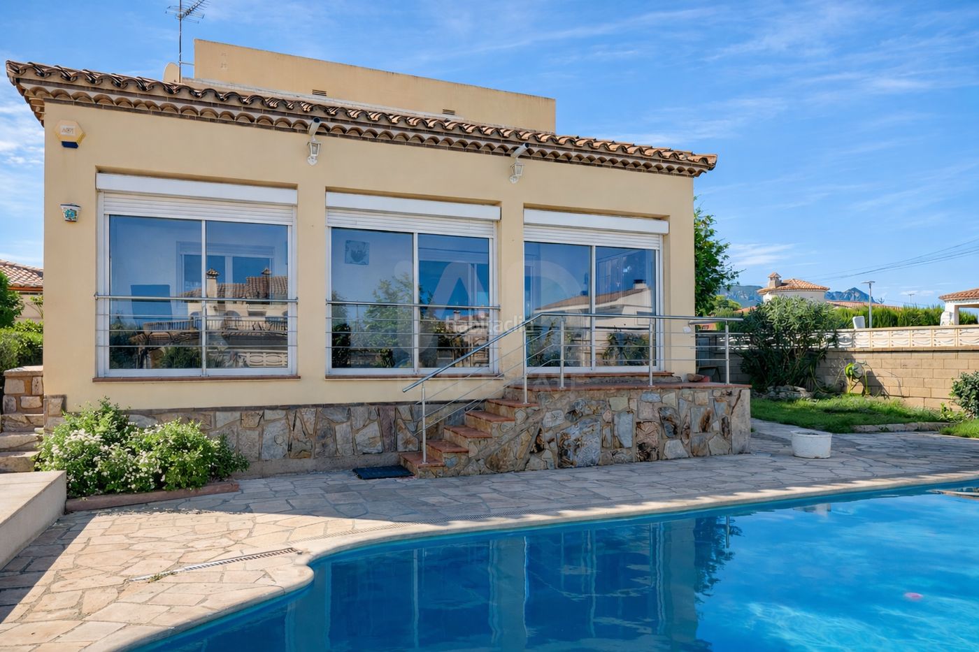 una amplia parcela en esquina, con piscina privada y zona de barbacoa, pensada para disfrutar del clima mediterráneo con total privacidad.