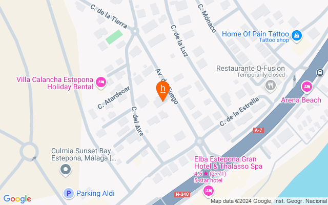 La villa está a sólo 800 metros de la playa, rodeada de naturaleza y cerca de una selección de campos de golf. Está a un corto trayecto en coche de Estepona al este y del puerto deportivo de La Duquesa al oeste. La famosa Finca Cortesín, uno de los mejores hoteles de 5 estrellas de la Costa del Sol, está a poca distancia en coche.
