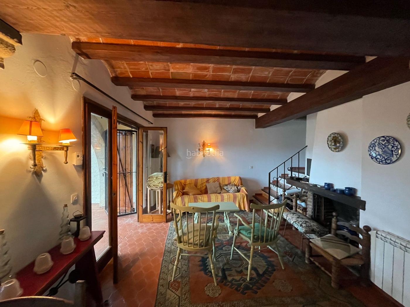 encantadora casa rústica amb sostres de bigues de fusta i volta catalana que li donen molt de caràcter. A la planta baixa hi ha un petit lavabo, zona rentadora assecadora, cuina, saló menjador amb llar de foc, terrassa i sortida per davant i per darrere. A la planta pis hi ha 2 habitacions dobles, amb armaris encastats i una amb balcó i un bany.