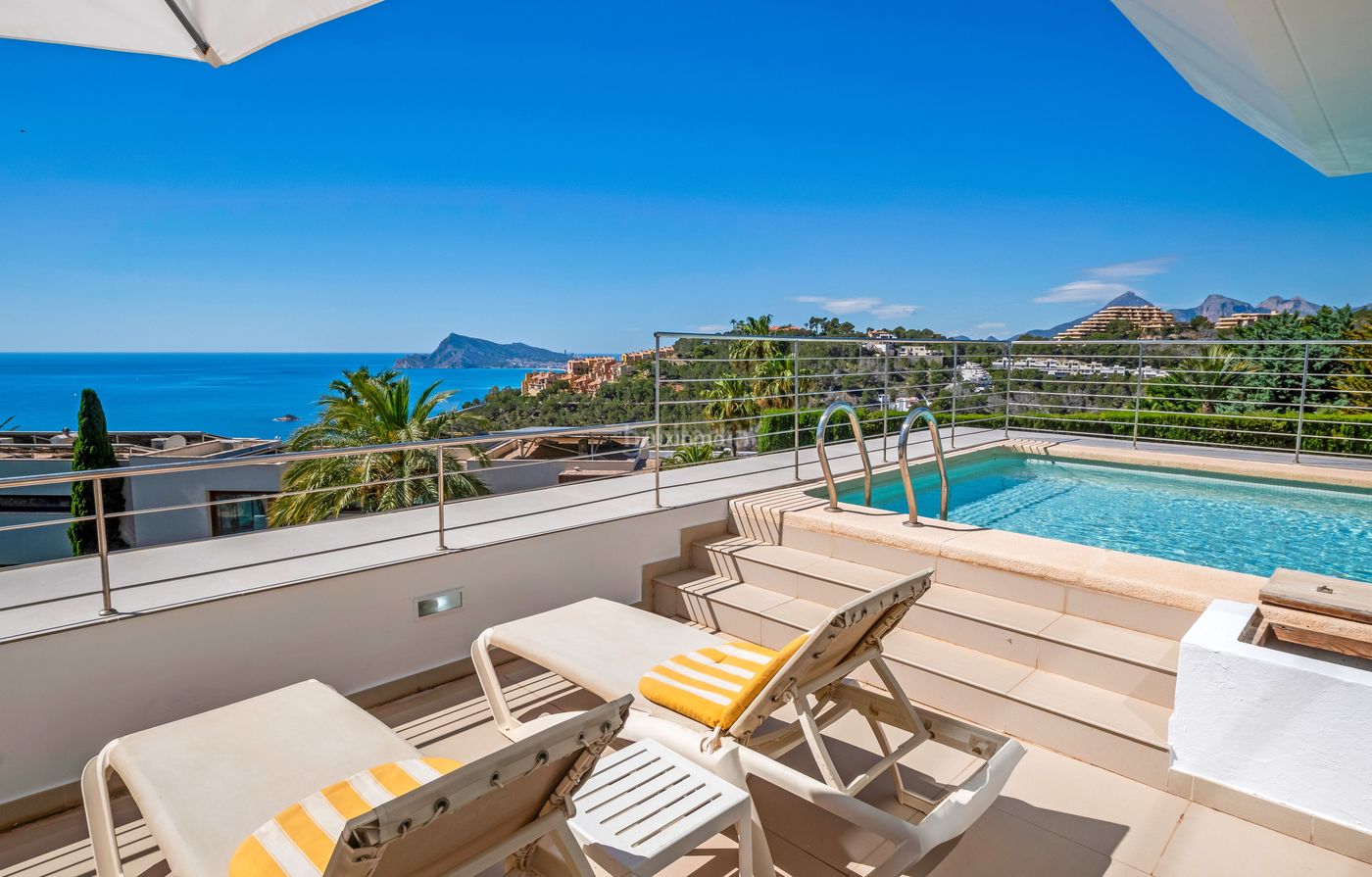 Moderno chalet pareado con piscina y vistas al mar en Altea Hills