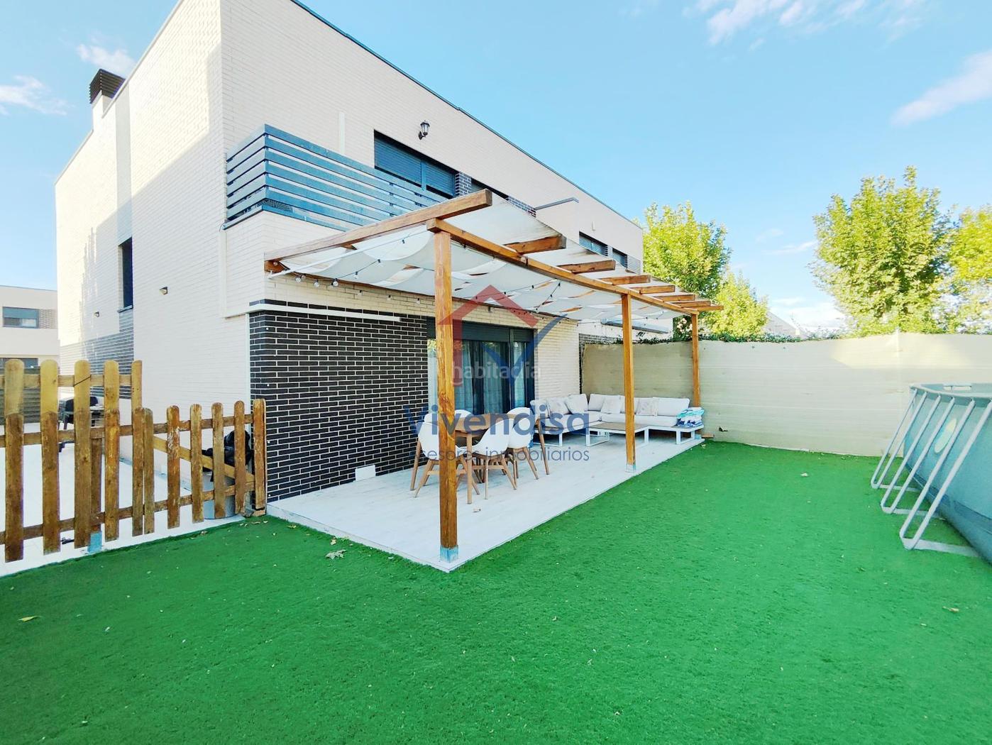 Vivendisa Asesores Inmobiliarios presenta en venta este estupendo chalet pareado, ideal para quienes buscan privacidad, comodidad y un entorno tranquilo. La vivienda dispone de un acogedor jardín con césped artificial y un precioso porche con pérgola ideal para disfrutar con la familia o amigos. En el lateral hay una zona solada que permite aparcar dentro de la parcela.