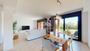 El acceso a la casa se realiza por la parte posterior, donde un jardín privado, totalmente cerrado y equipado con césped artificial y sistema de riego automático, da la bienvenida. Al entrar, un amplio recibidor conduce, a mano izquierda, a un aseo de cortesía y a un pequeño cuarto de lavandería independiente. Enfrente, una cocina contemporánea, abierta a un salón-comedor de generosas dimensiones que, gracias a su posición esquinera y orientación sur, se llena de luz natural a través de múltiples ventanales.