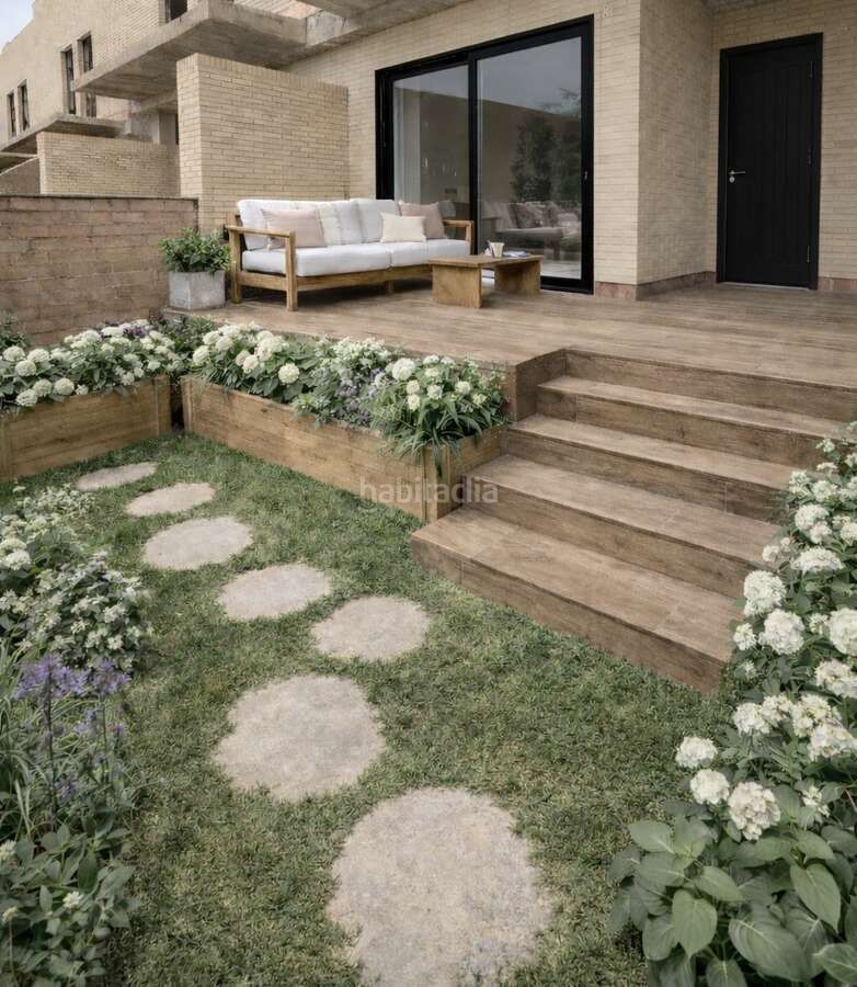 Distribuida en planta baja con acceso desde la calle al porche de la vivienda con jardín privado, salón comedor, aseo, cocina independiente tipo office con acceso al patio trasero de la vivienda.