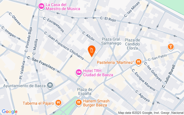 La casa está situada en en pleno casco histórico de Baeza, en el corazón del Barrio de San Francisco del recinto extramuros, en un contexto de casones y portadas de piedra.