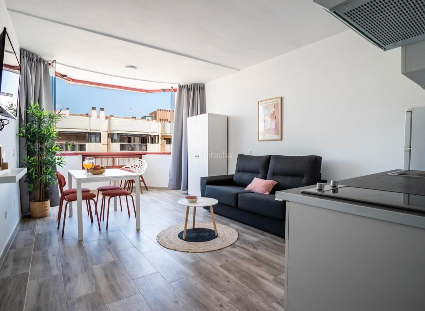 El espacio está completamente reformado y amueblado, con una distribución abierta que incluye zona de estar con sofá, cama doble integrada, cocina americana equipada con frigorífico, microondas, cafetera, tostadora y menaje, además de un baño con ducha. Cuenta con aire acondicionado, calefacción, lavadora, TV y armario empotrado.