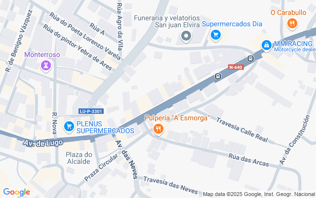 25 metros de fachada por la parte frontal con entrada a Avd. De Lugo y parte lateral a Plaza Liñares.