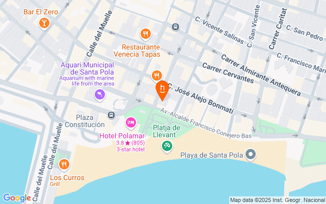 Zona playa levante con la mejor ubicación de la zona calle peatonal frente al mar y donde se concentra una gran actividad de ocio y comercio, hotel Polamar, Ayuntamiento Santa Pola, un gran para qué para que jueguen los pequeños