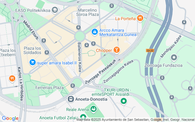 Situado frente al complejo polideportivo de Anoeta y el Estadio Reale Arena.