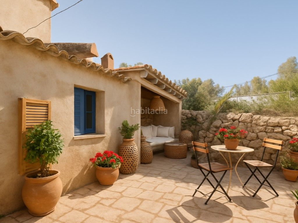 Justo detrás de la caseta se abre un patio-jardín con suficiente espacio para colocar una zona chill out o relajarte en el jardín. En la finca podrás habilitar fácilmente un huerto para cultivar verduras y hortalizas. Y para aprovechar el agua de lluvia, ya dispone de un pozo de recogida. Más allá, olivos, algarrobos y pinos mediterráneos crean un entorno tranquilo y natural, ideal para quienes quieren vivir en contacto directo con el campo, o disfrutar de fines de semana sin estrés.