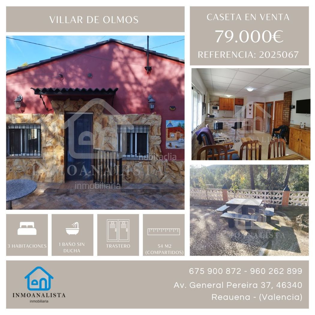 Se vende acogedora caseta de campo de 54 m², ubicada en una parcela compartida de 1.983 m² en un entorno tranquilo y natural de Villar de Olmos. Ideal para escapadas, desconexión o como segunda residencia.