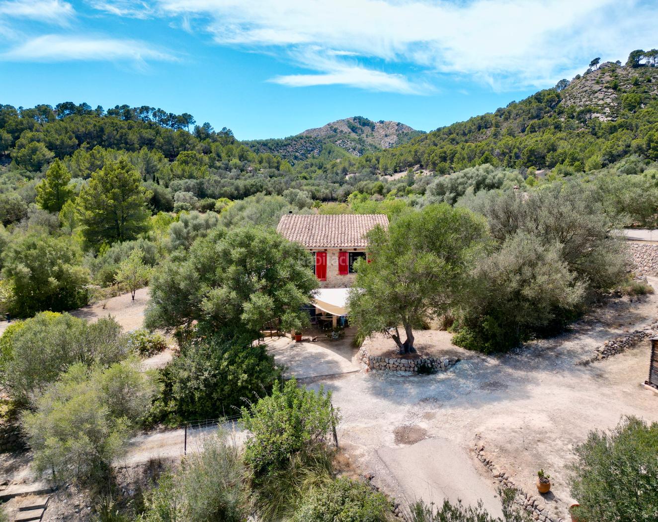 Descubra esta espectacular casa rústica legal, completamente reformada con mucho encanto. Situada en una parcela de 3700m² esta vivienda ofrece una privacidad total, rodeada de impresionantes vistas a la Sierra Tramuntana. Cuenta con una construcción de 150m² y un hermoso jardín de 1200m², y el resto de la parcela es un terreno agrícola 2800m²
