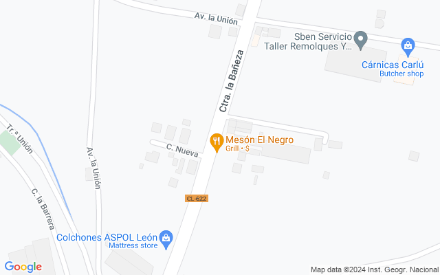 Consta de 2 naves (una de las naves tiene forjado) con 1.750 m² más oficinas en 1ª planta de 90 m². El solar es de 2.355 m². Baños y oficinas en planta baja y en planta 1ª. Aparcamiento cerrado. Entrada independiente para las naves y las oficinas. Estado certificación: Exento. Carretera de La Bañeza