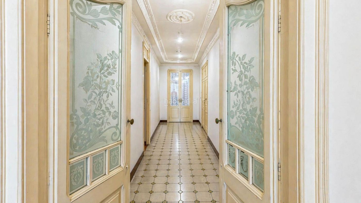 Inmobiliaria en Barcelona Nova Esquerra Eixample. Venta de piso con mucho Encanto. Finca Regia Catalogada techos altos.
