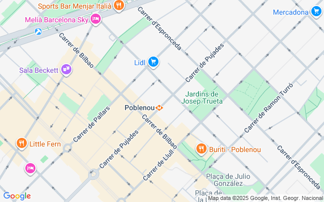 Ubicado en una zona privilegiada, justo frente a la parada de metro Poblenou (L4), con excelentes conexiones de transporte: Autobuses: 192, 6, B25, V25, 136; Tranvía: T4; Trenes: R1, R2, R7.