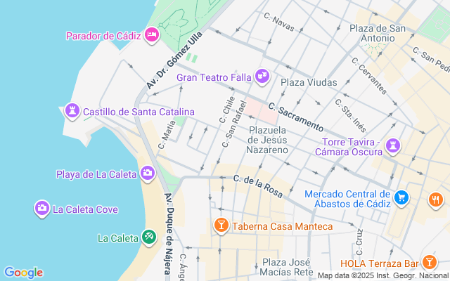 Ubicación inmejorable: a 5 minutos andando de la playa de La Caleta, a la espalda del Gran Teatro Falla y rodeado de supermercados, farmacias, colegios y todo tipo de servicios.