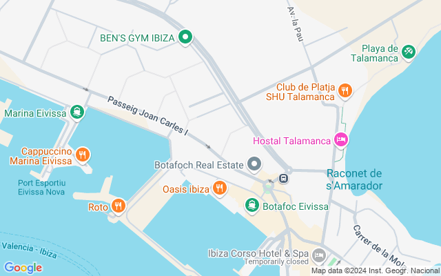 Ubicado en la prestigiosa zona de Marina Botafoch, la propiedad ofrece acceso a una amplia gama de servicios exclusivos. Desde restaurantes gourmet y boutiques elegantes hasta la famosa vida nocturna, todo está a pocos pasos. También se encuentra cerca de la icónica playa de Talamanca, el centro de la ciudad y el casco antiguo.