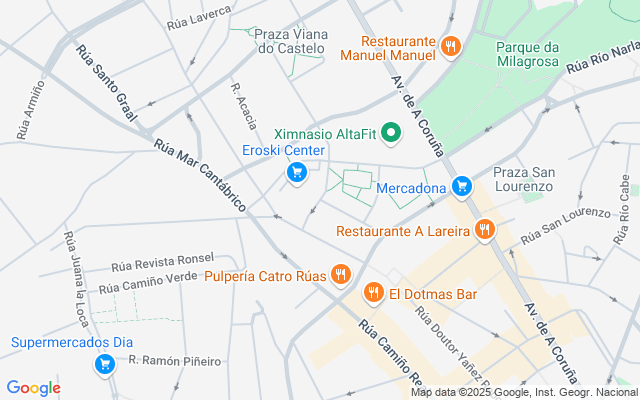 En un radio de 300 metros podrás acceder a las líneas de transporte urbano.Cuenta con todos los servicios que precisas: zonas verdes y espacios públicos, áreas comerciales, correos, iglesia y dotaciones diversas. A menos de 950 metros se encuentra la muralla, con entrada al hermoso casco histórico de Lugo.