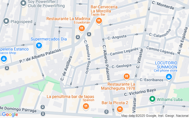 La zona dispone de colegio público, colegio concertado (Centro Privado de Enseñanza Comunidad Infantil de Villaverde), supermercados (Mercadona) y (DIA), tiendas de alimentación asiáticas y latinas, y gran variedad de comercios, (bancos, farmacias, guarderías, peluquerías, fruterías, locutorios, bares, ferreterías, etc).