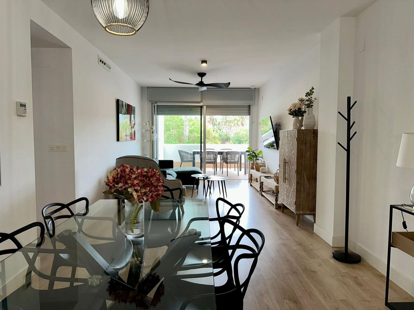 La urbanización cuenta con grandes zonas ajardinadas, 2 piscinas, pistas de pádel y parque infantil.