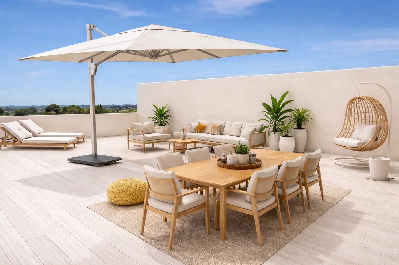 Además de eso... El piso cuenta también con 3 habitaciones y 2 baños completados con un ahorro energético de climatización y calefacción A+ gracias a su sistema de aerotermia. Las carpinterías exteriores están hechas en aluminio con rotura de puente térmico, brindándoles asimismo mayor privacidad, seguridad y silencio exterior, junto a las persianas a todas las ventanas para un mayor confort y seguridad personal. Esto quiere decir que no deberás preocuparte nunca por el ruido exterior del viento, los vecinos jugando en la fantástica piscina comunitaria o de que las risas cenas al atardecer te impidan el sueño. También es una vivienda accesible, energéticamente eficiente y realizada y pensada para preservarte del frío y el calor por muchos años, todos, si quieres.