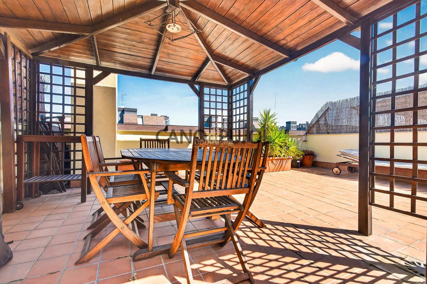 El dúplex destaca especialmente por su espectacular terraza de aproximadamente 40 m², un auténtico oasis privado donde disfrutar del sol, la luz natural y las vistas abiertas a la montaña. Este espacio ha sido cuidadosamente acondicionado con zona de barbacoa y una pérgola que invita a largas sobremesas y momentos de relax al aire libre.