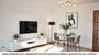 Salón y Terraza: El Corazón del Hogar: Al acceder a la zona de día, encontramos un amplio y acogedor salón. La estancia, bañada por la luz natural gracias a sus grandes ventanales vestidos con cortinas claras, invita al descanso y a la vida social. El espacio está perfectamente habilitado para crear un ambiente cálido y dispone de un mueble modular de madera con gran capacidad de almacenaje y áreas de exposición. Desde el salón se accede directamente a una terraza exterior privada. Este rincón al aire libre es un verdadero desahogo, un lugar perfecto para disfrutar del desayuno, tomar el sol o simplemente contemplar las vistas despejadas de los tejados de la localidad. La terraza cuenta con toldo, suelo de gres cerámico y ladrillo visto, y dispone de la preinstalación para el aire acondicionado exterior, lo que la convierte en un espacio versátil y agradable durante todo el año.