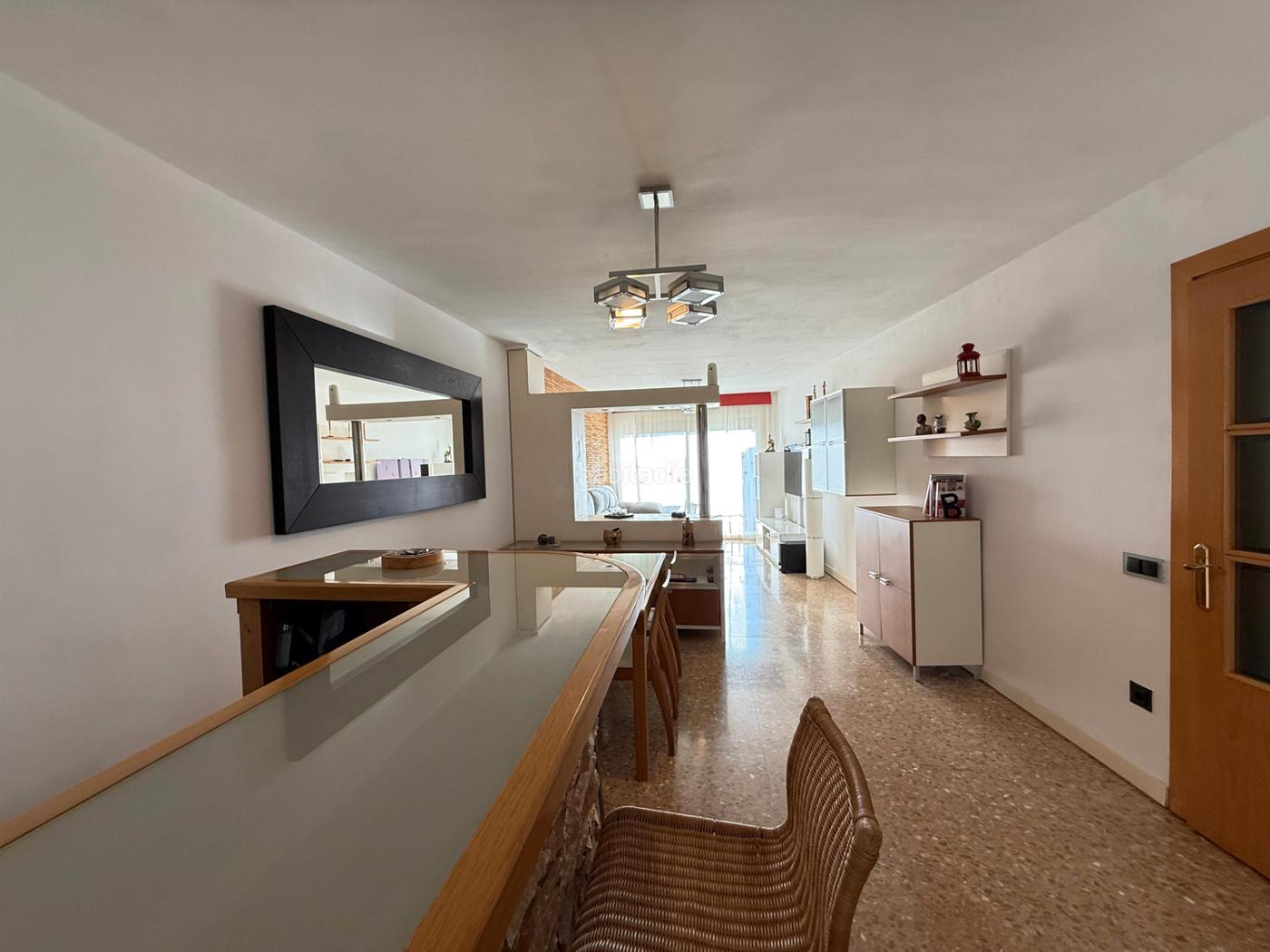 Desde la entrada accedemos directamente al amplio salón comedor, dividido en dos ambientes por una original barra tipo bar, perfecta para reuniones con amigos o cenas informales. Desde aquí accedemos a una acogedora terraza-balcón con vistas despejadas a la montaña y orientación sur, lo que garantiza luz natural durante todo el día.