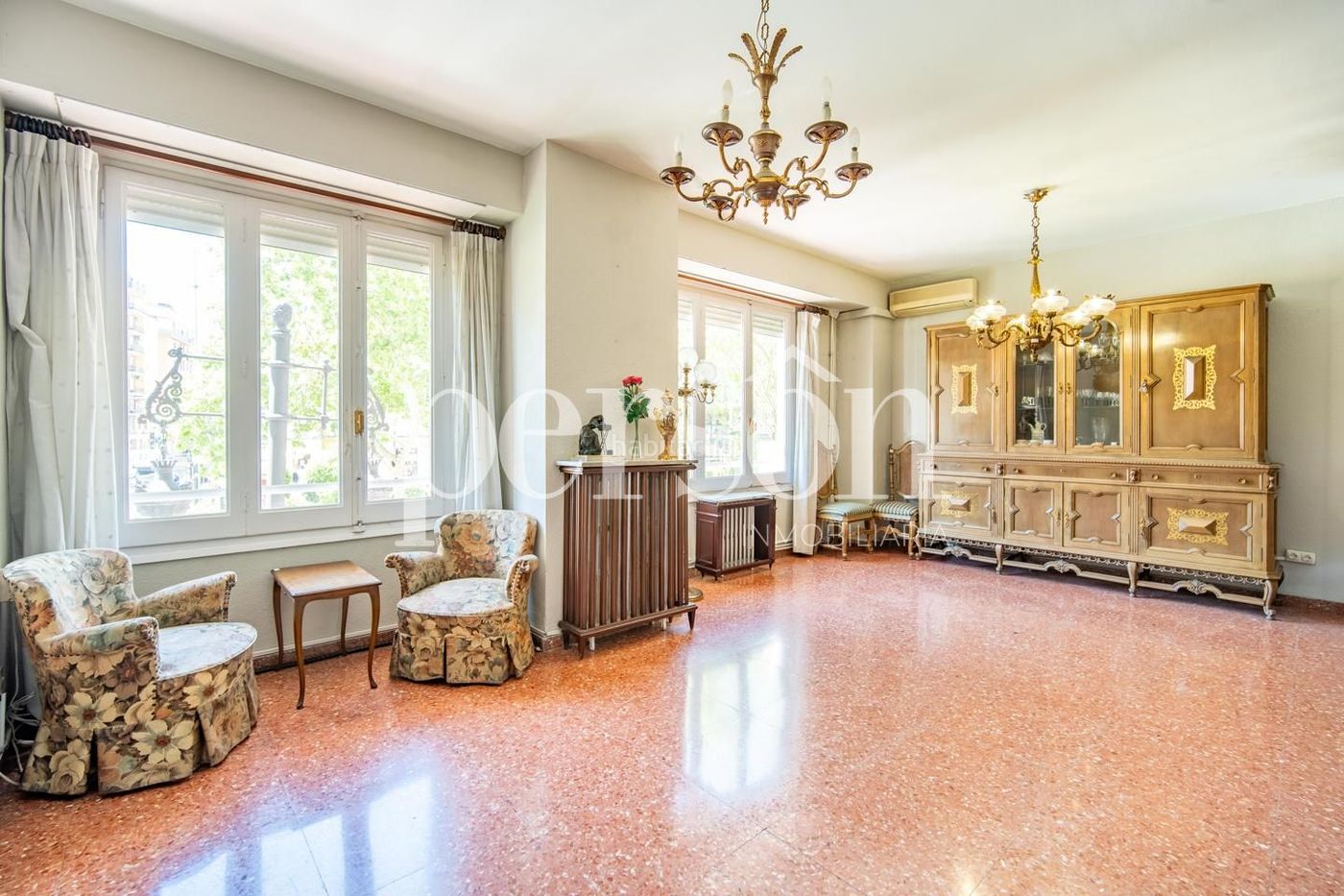 Actualmente, la propiedad se distribuye en un gran salón-comedor con vistas a la calle, que aporta luz natural y sensación de espacio, además de un segundo salón independiente, ideal para adaptar según necesidades: un tercer dormitorio, despacho o zona de estar adicional.